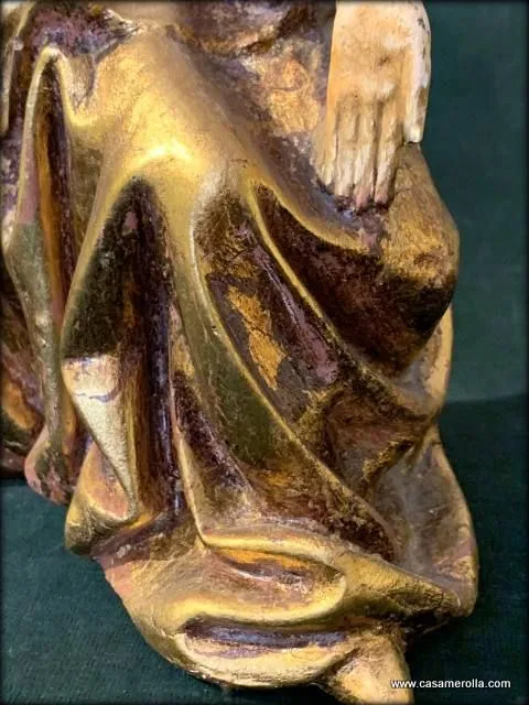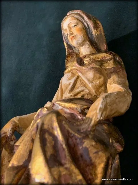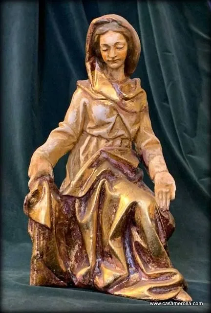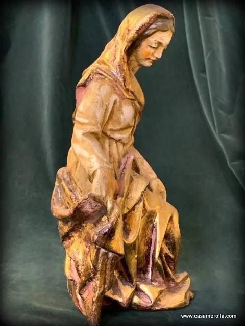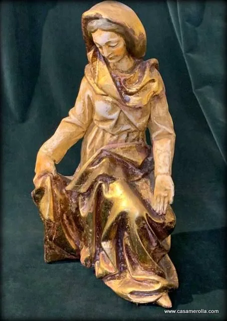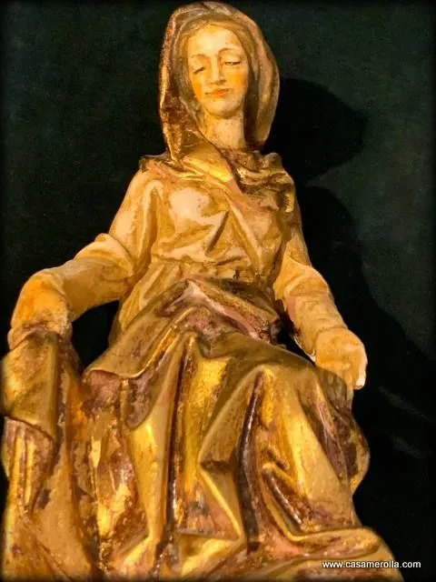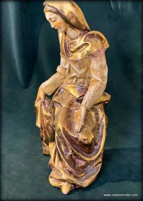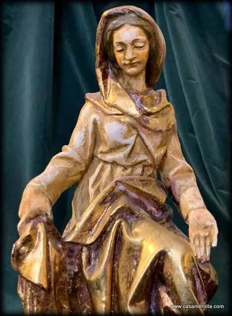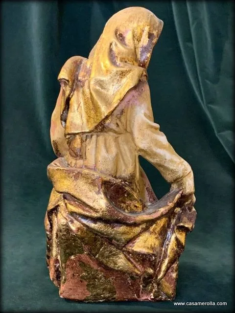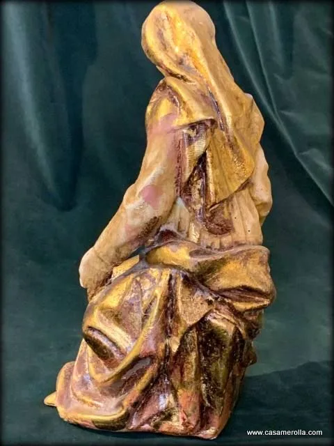 Escultura Virgen María elaborada de Hidrocal (yeso artístico) y pintada a mano. Producto artesanal italiano . Medidas : Altura 30,0 cm, Ancho 16,0 cm .