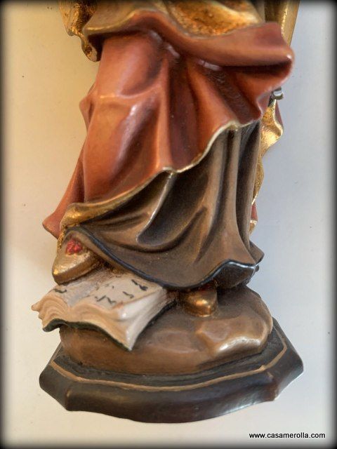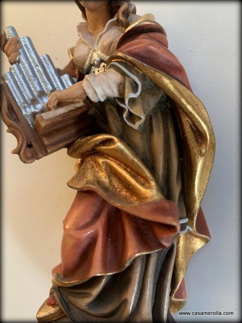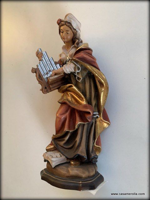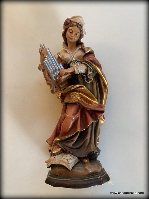 * Imagen de Santa Cecilia, elaborado de pasta de madera , producto hecho y pintado a mano , artesanía Dolfi ( Italia). Certificado de calidad. Medida 15 cm.