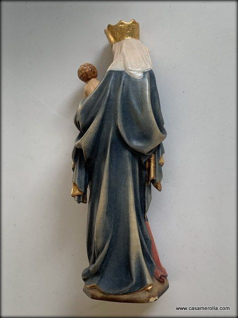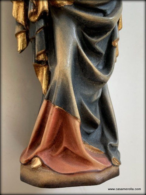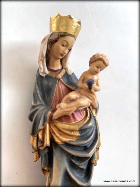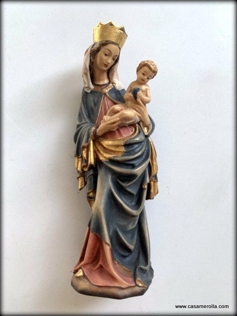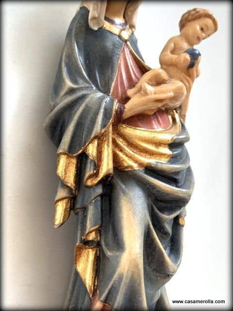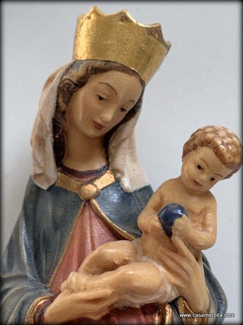 * La estatua de la imagen de la Virgen de Krumau ( Krumauer Madonna en alemán), representación de una famosa escultura gótica elaborada en pasta de madera ,hecha y pintada a mano .Articulo de la artesanía italiana de Dolfi. Medida: 14,5 cm.