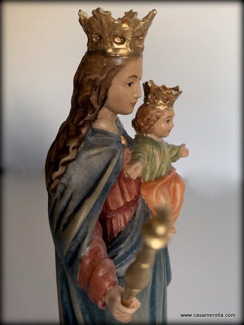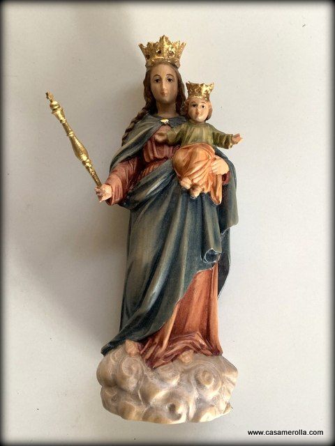 * Nuestra Señora del Perpetuo Socorro elaborada en pasta de madera , hecha y pintado a mano. Artesanía italiana Dolfi. Medida: 15,5 cm.