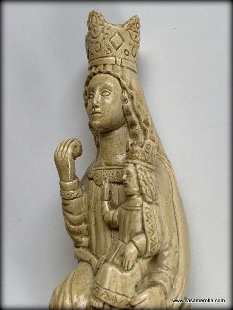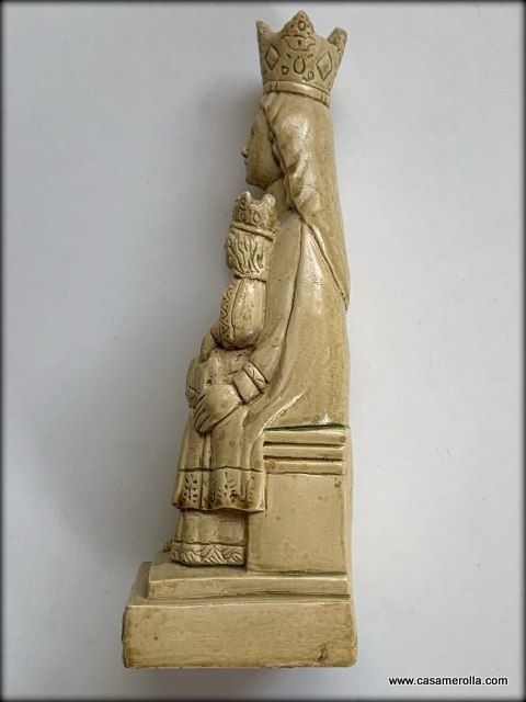 Imagen de la Virgen Románica elaborado en color de la piedra natural. Articulo artesanal hecho a mano. Medidas : 20 x 7 cm. Disponibilidad : 1 un.