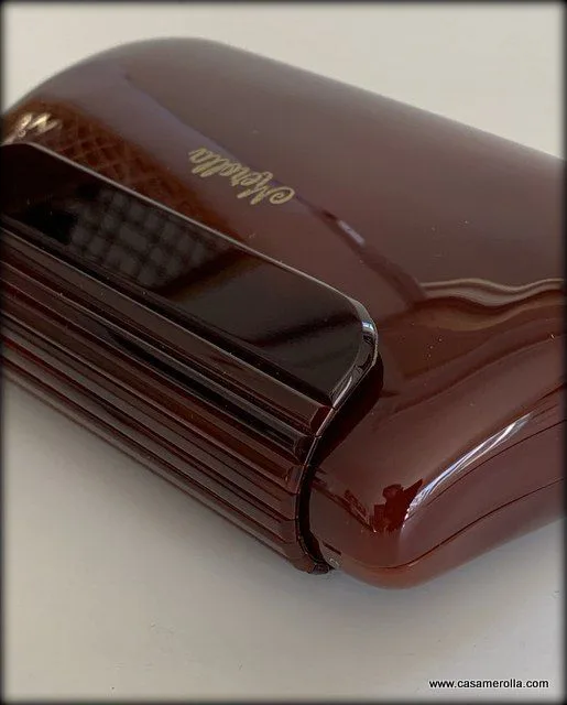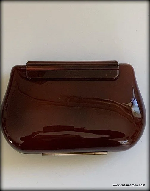 Elegante bolso de mano de Carey , articulo único de colección. Articulo hecho a mano con clip magnético y cadena dorada. Medidas : 17,5 x 11,5 x 4,5 cm.
