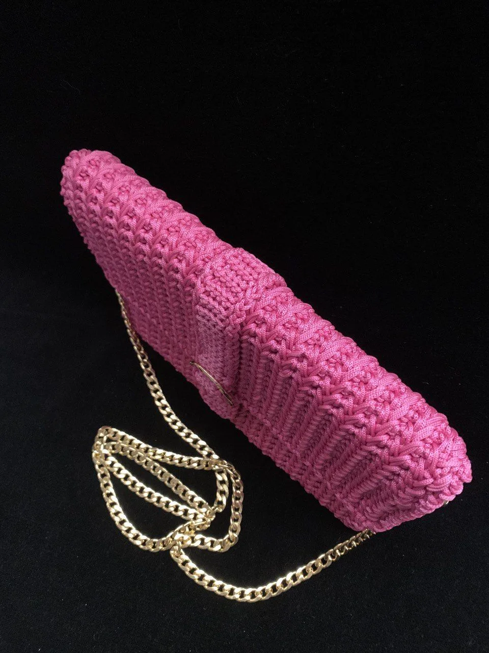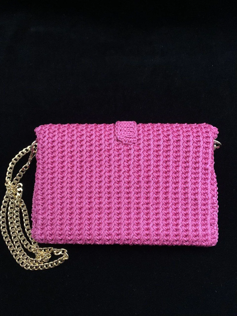 Elegante bolso de mano crochet de color fucsia con forro, cierre con clip magnético , articulo de diseño hecho completamente a mano. Tamaño : 28,0 x 19,0 x 4,0 cm. Longitud de la cadena 120,0 cm.