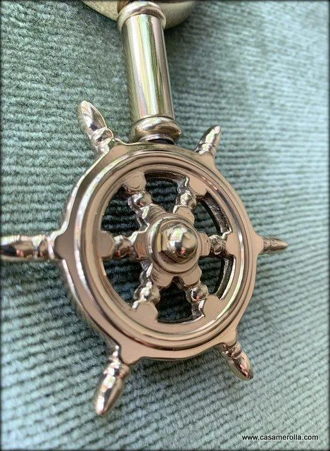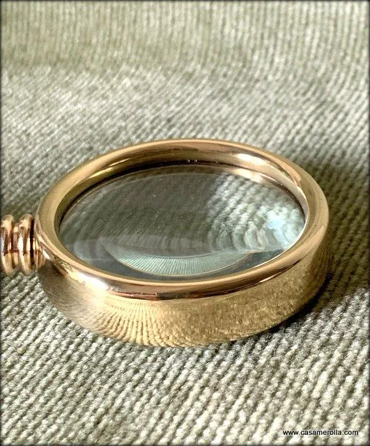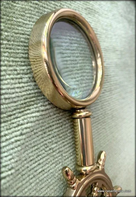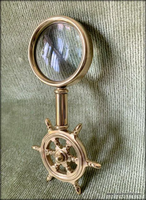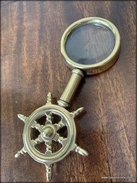 Lupa – pisapapeles de latón sobremesa, modelo timón . Articulo de diseño , pieza única y exclusiva. Perfecto accesorio y regalo. Medidas : 14,5 x 5,0 cm. Peso 300 gr.