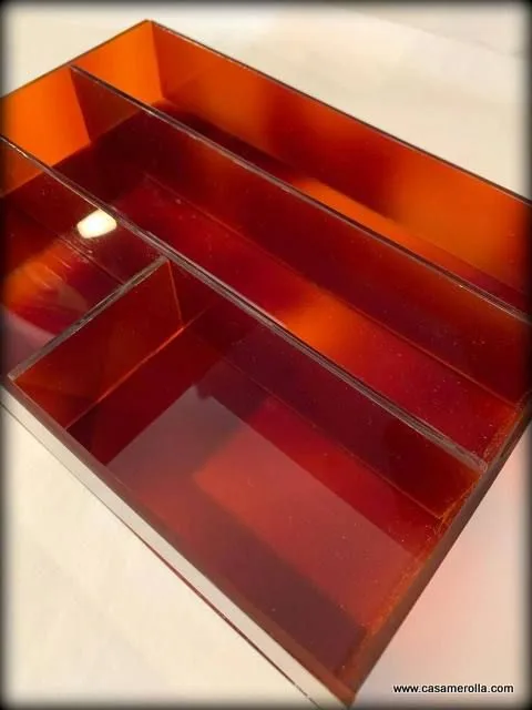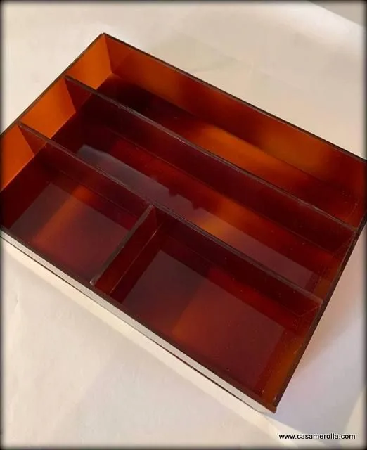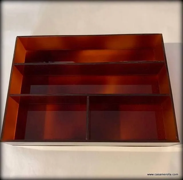 Caja organizadora en Carey tono liso, articulo artesanal con origen organico y ecologico. Dimensiones 23,5 x 16,5 x 4 cm. Grosor de laminas 0,5 cm