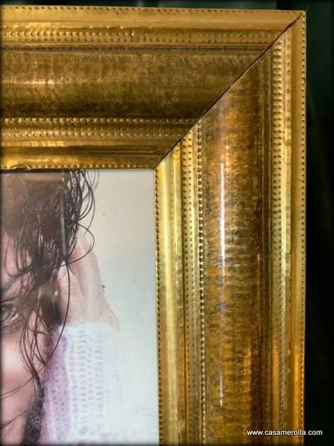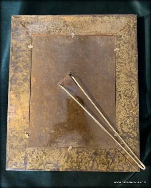 Marco sobremesa de diseño, elaborado de metal ( laminas de mezcla de latón y cobre) repujado de color oro envejecido . Articulo de edición limitada . Producto artesanal . Medidas exterior : 35,0 x 29,0 cm. Interior : 23,0 x 17,0 cm.