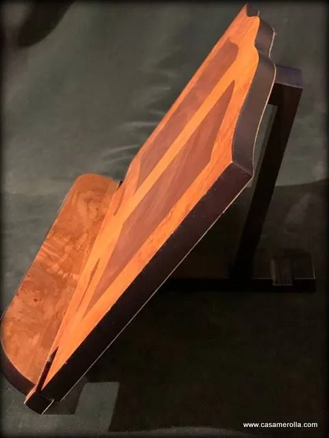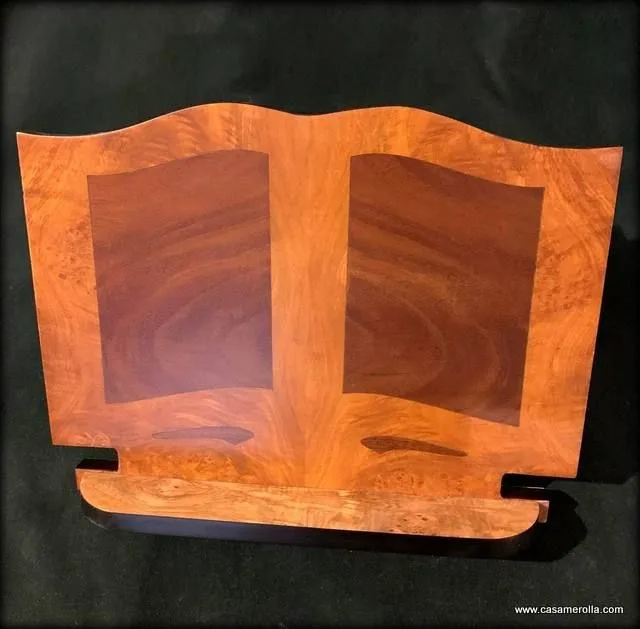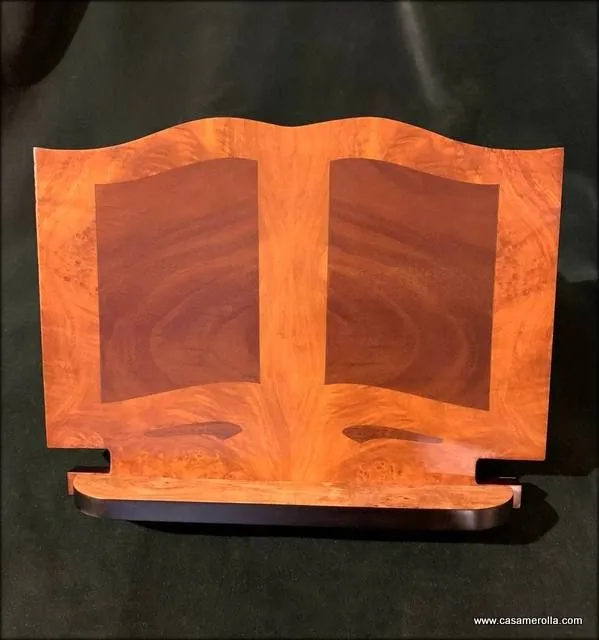 Soporte para Libros, elaborado de madera noble de 3 tonos por artesanos italianos . Articulo único y de calidad superior. Medidas de Atril : 31 x 24 x 5 cm.