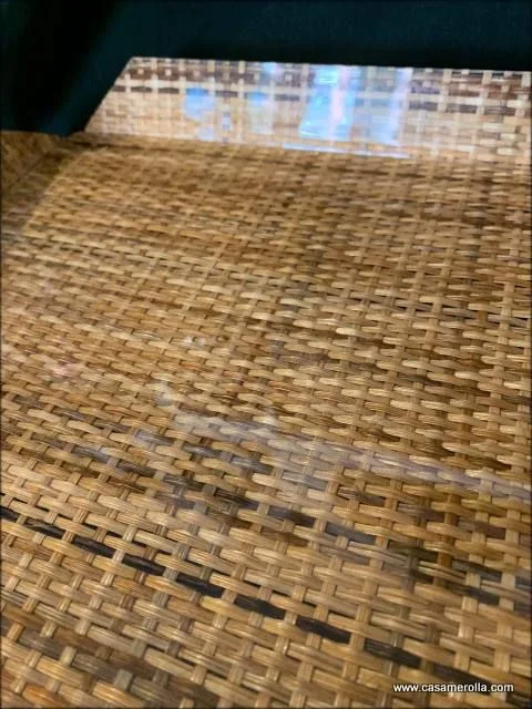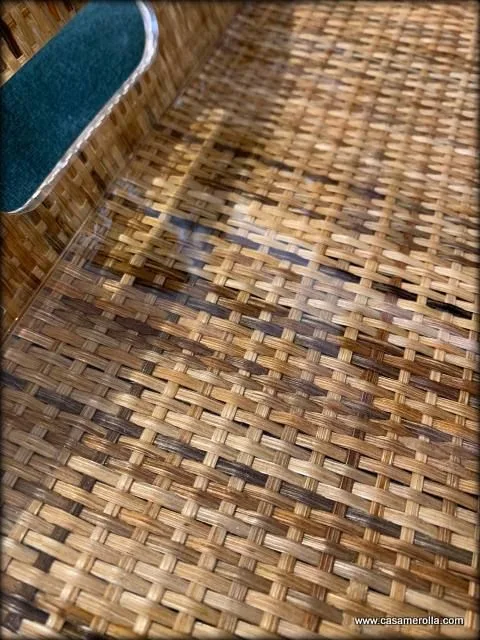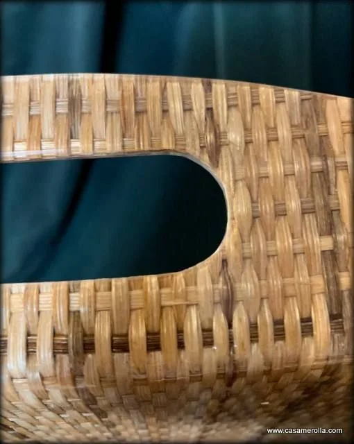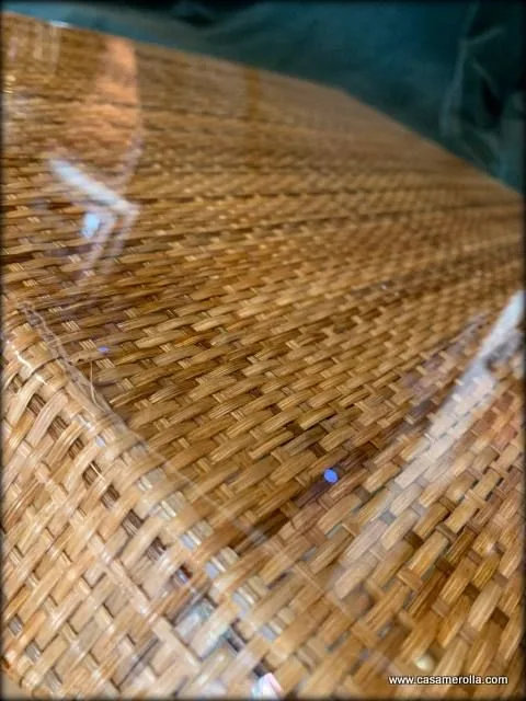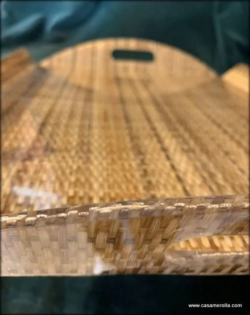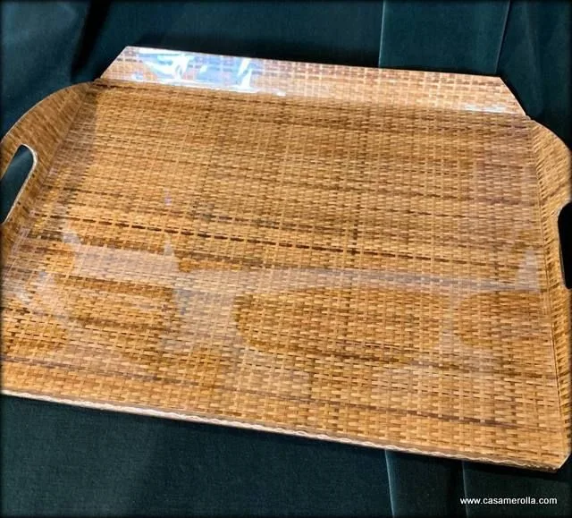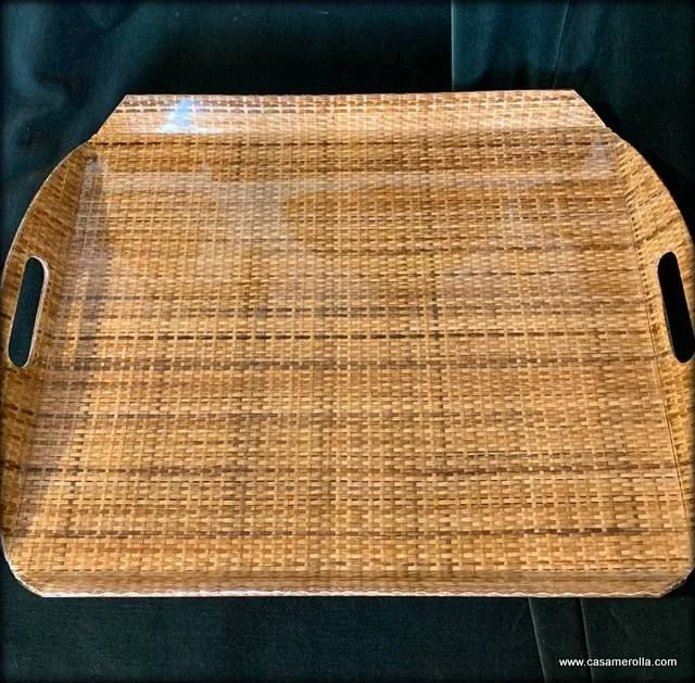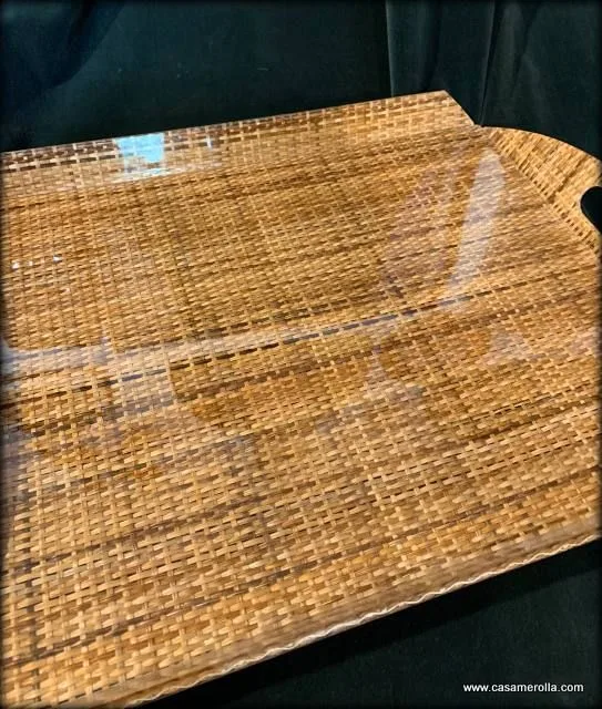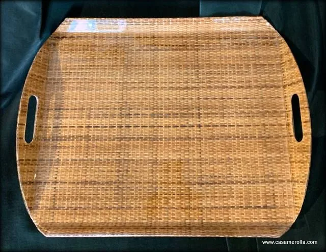 Bandeja de Ratán natural multitono , cubierta con resina natural para su conservación . Producto artesanal, hecho a mano. Medidas : 52,0 cm x 40,o cm.