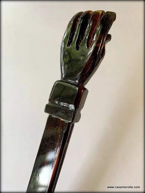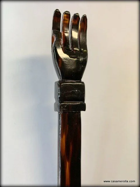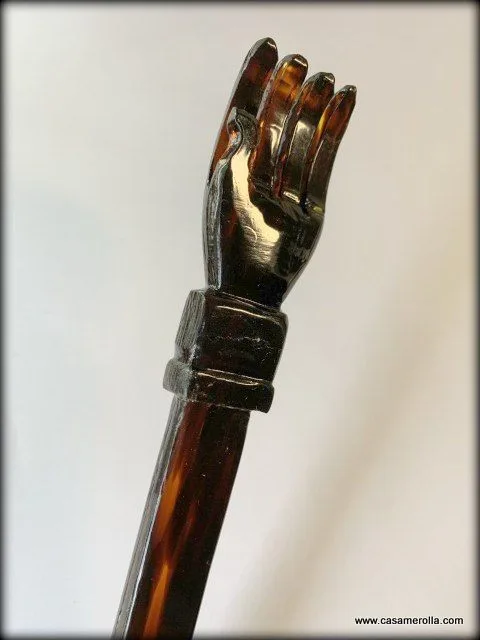 Rascador de espalda ( modelo manita ) Compostura en Carey realizada mediante metodología artesanal .Talla a mano .Medidas : Largo 43,0 cm ,Ancho 2,0 cm, Ancho de la mano 4,3 cm.