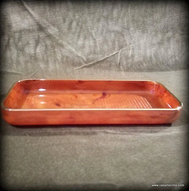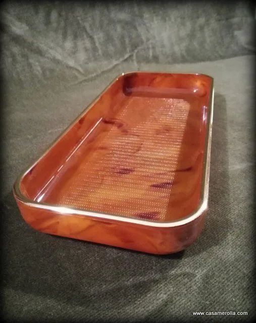 Bandeja de tocador en Carey con bordes dorados . Producto de origen organico .Articulo artesanal.