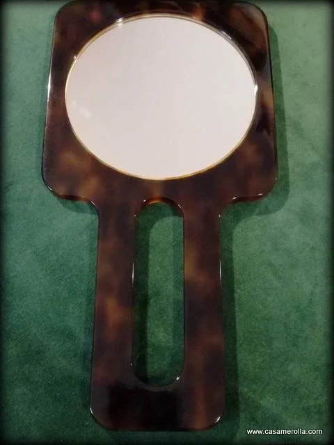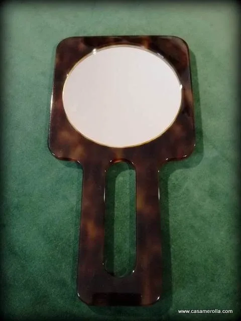 Espejo cara doble (una de aumento) de Carey con mango 17 x 30 cm.(Articulo artesanal)
