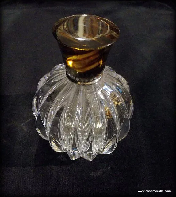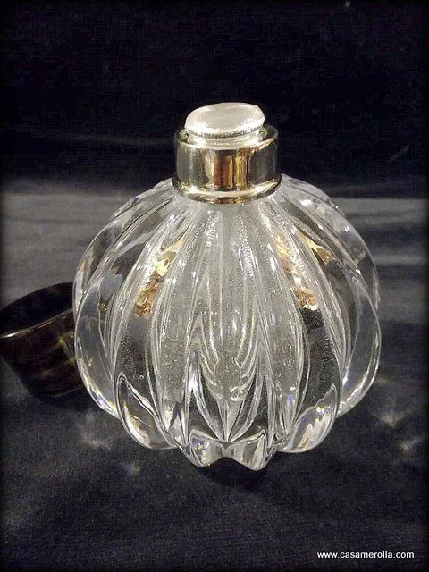 Frasco de tocador de talla de cristal con tapa en Carey .Articulo artesanal .