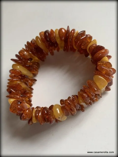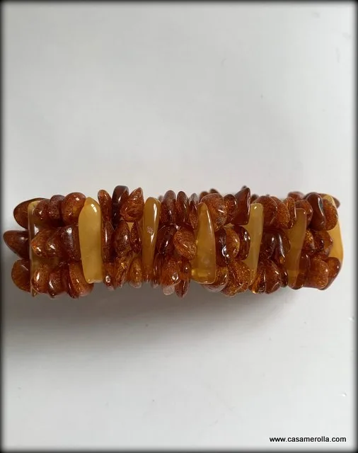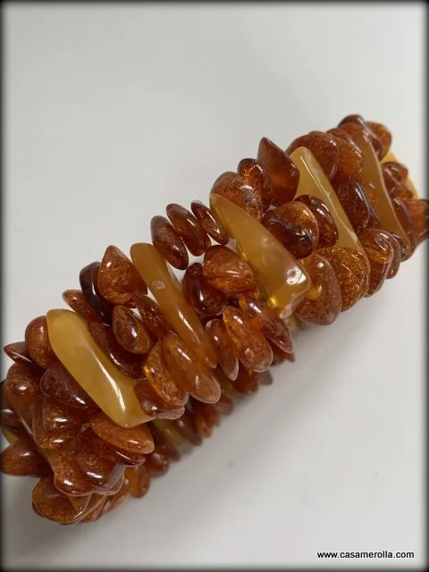 Pulsera de ámbar 100% natural , montada en goma elástica .Producto hecho completamente a mano. Ancho de la pulsera 2,5 cm. Disponibilidad 1 un.