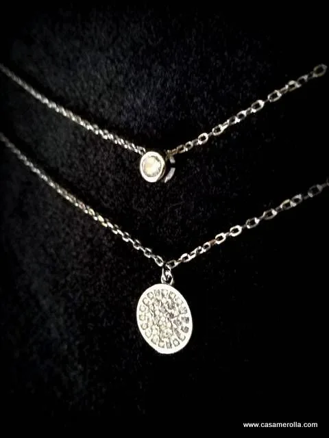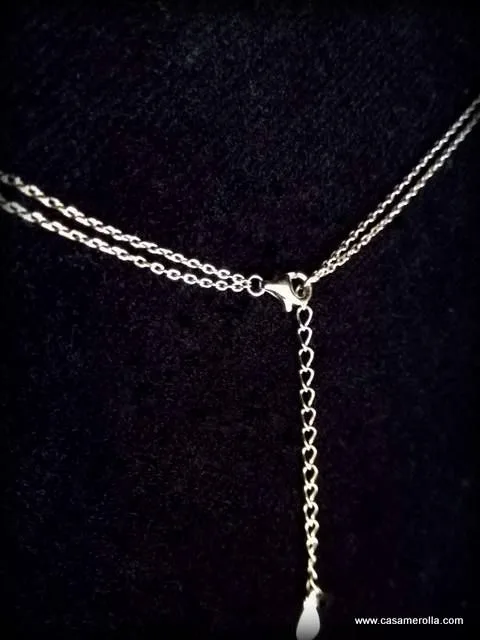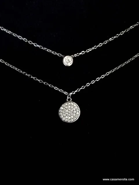 Gargantilla doble fabricada en plata ( Primera de Ley ) de 925 milésimas con tratamiento de alta calidad en Rodio característica exclusiva que le aporta una elevada calidad de terminación y consistencia , así como un excelente brillo y elegante acabado simil al Oro blanco de alta Joyería.