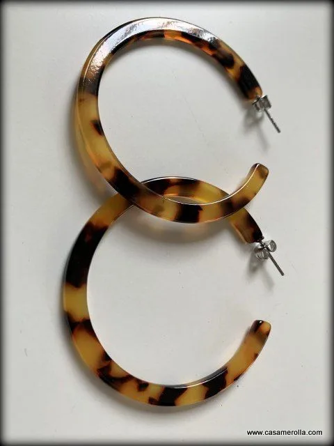 Pendientes de Carey en forma de aro con elementos en acero inoxidable. Articulo hecho en Francia. Medidas : 5,0 cm. Modelo EAR624