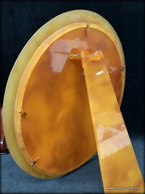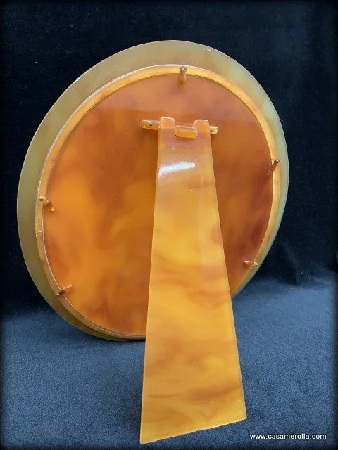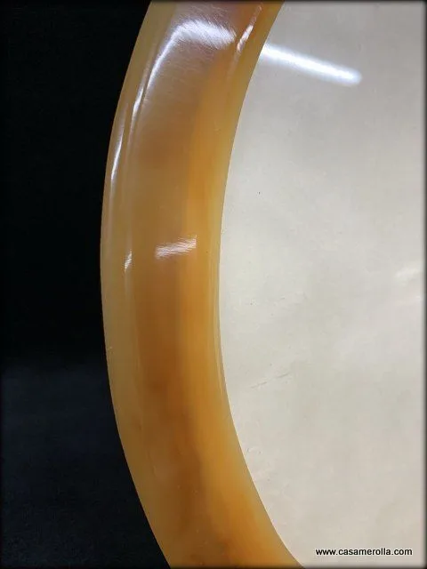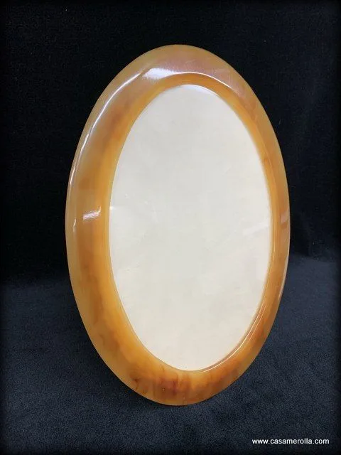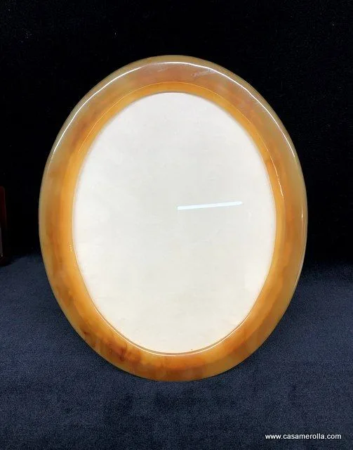 Marco ovalado en Carey rubio con cristal. Elaborado y pulido manualmente. Articulo de autentica artesanía. Medidas : Exterior 27,5 x 22,2 cm. Interior 17,0 x 22,0 cm.