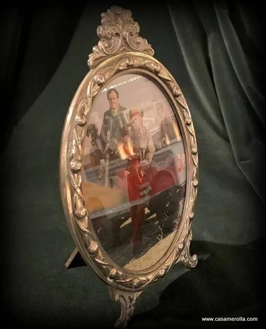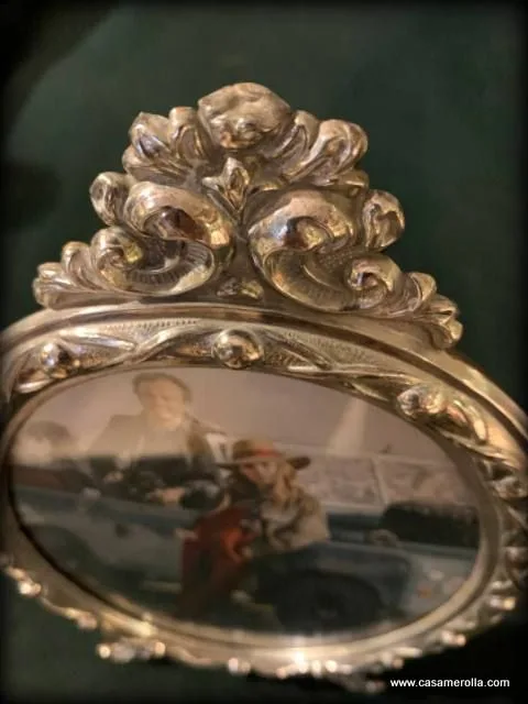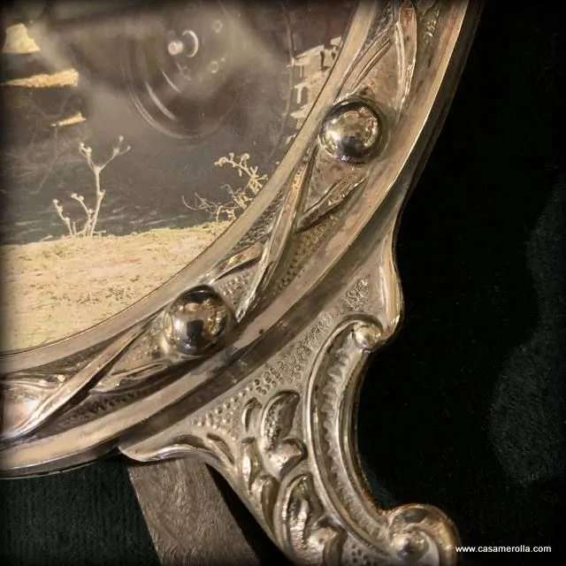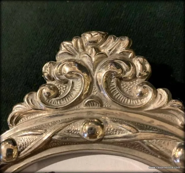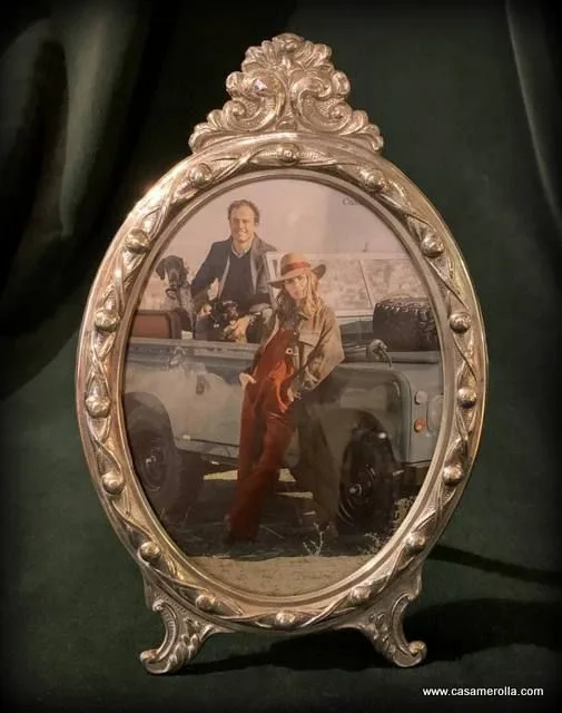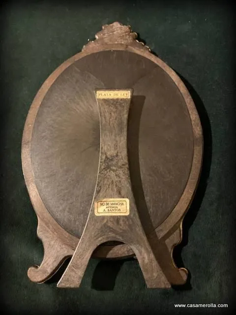 Marco ovalado de mesa elaborado de Plata de Ley con cristal , estilo antiguo . Producto artesanal . Medidas exterior : Alto 24,0 cm , Ancho 15,0 cm. Medidas interior : Alto 16,0 cm , Ancho 12,0 cm.