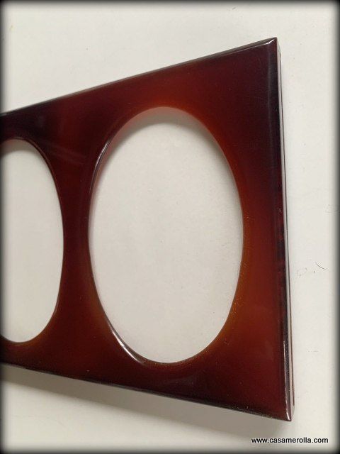 Marco en Carey doble ovalado, articulo especial  elaborado a mano por artesano de oficio. pocas unidades. Hasta fin de stock. Tamaño de orificio 5,5 x 8,5 cm. para fotos de 9 x 6 cm. Tamaño exterior 11,0 x 15,0 cm.