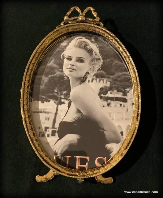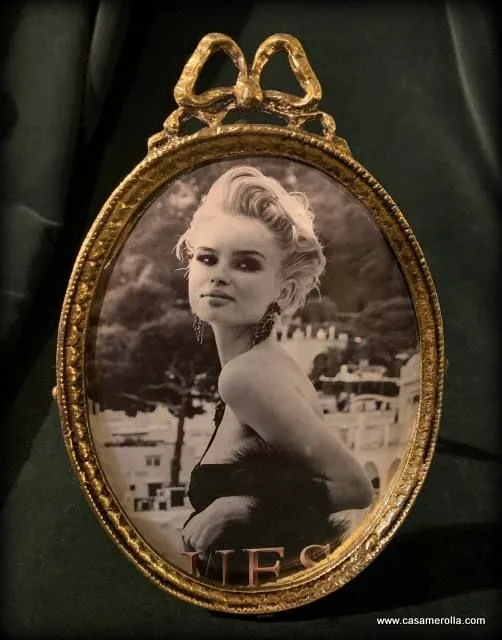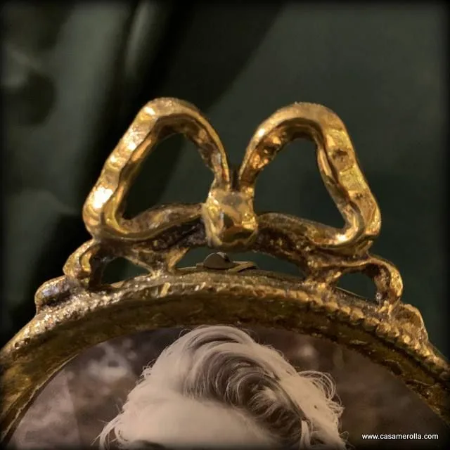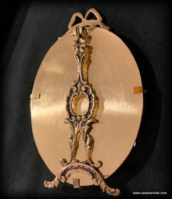 Marco sobremesa de metal de color oro envejecido con cristal , estilo antiguo. Producto artesanal. Medidas : 13,5 cm x 20,0 cm.