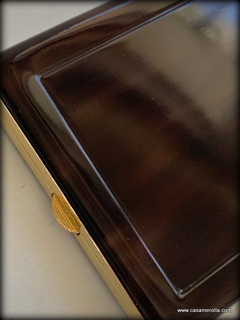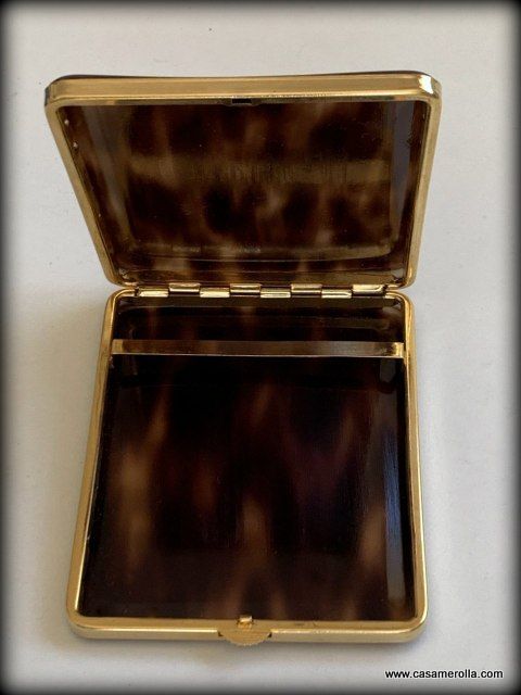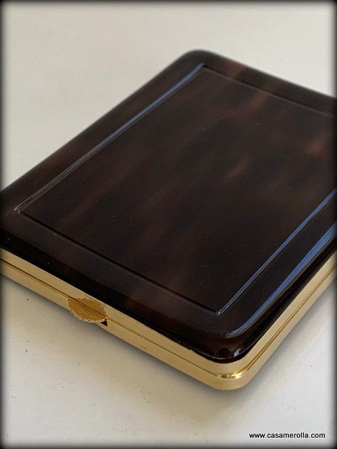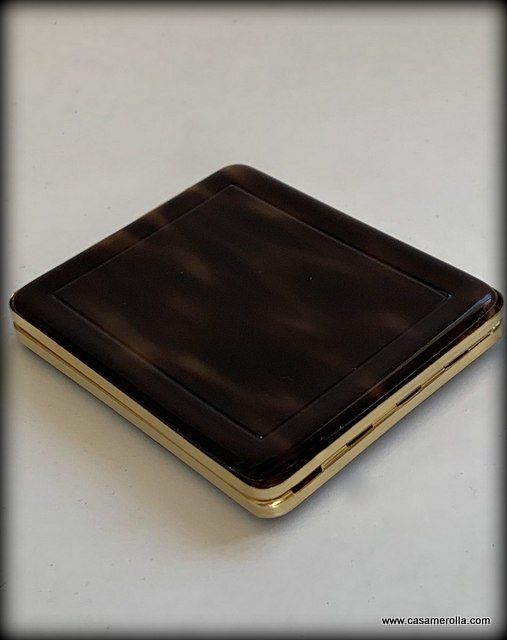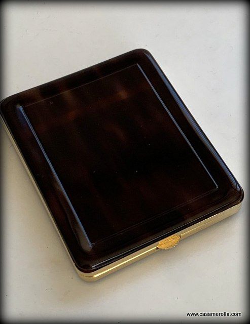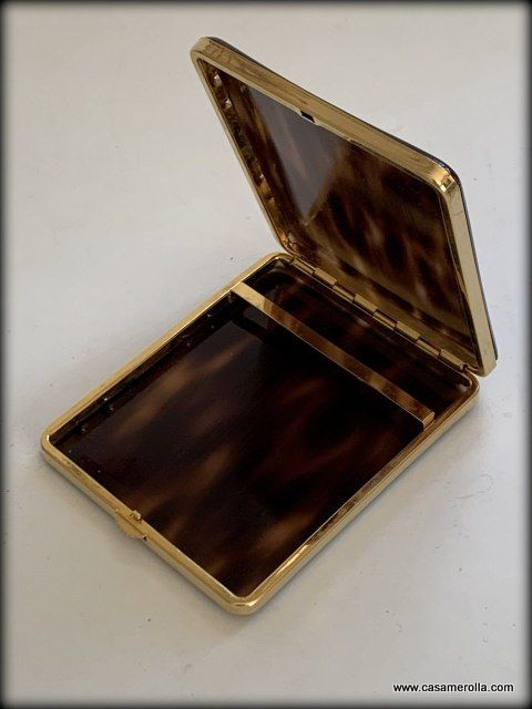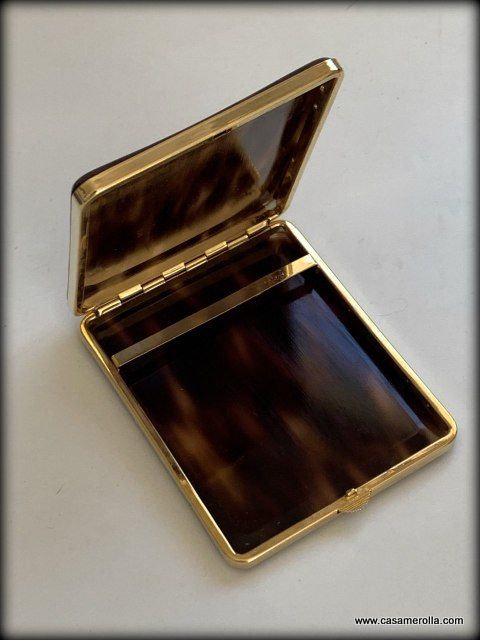 Pitillera vintage de Carey de artesanía francesa, color concha oscura con remates metálicos dorados. Hecho a mano. Medidas : 11,0 x 9,0 x 1,7 cm.