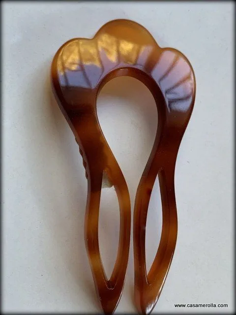 * Horquilla decorativa de Carey , hecha a mano. Articulo de la calidad superior. Medidas : 8,0 x 3,7 cm