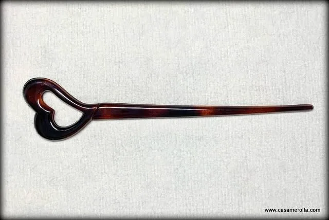 Palillo para el cabello en Carey francés , modelo corazón .Producto de alta calidad . Medidas : Largo 15,5 cm, Ancho 0,8 cm.
