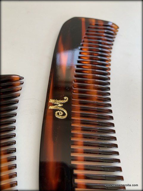Peine de Carey francés, articulo elaborado y pulido a mano. Tiene la forma anatómica y púas fuertes con puntas redondeadas. La inicial a elegir. Medidas : 15,0 x 4,0 cm. Disponibilidad : 5 un. Modelo CM015a.