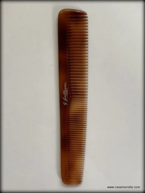 Peine de Carey de doble púa, hecho a mano. Articulo de la calidad superior de G. Guillaume (Francia) , indicado para cabello corto. Medidas : 14 ,7 x 2,5 cm. Modelo CM014.