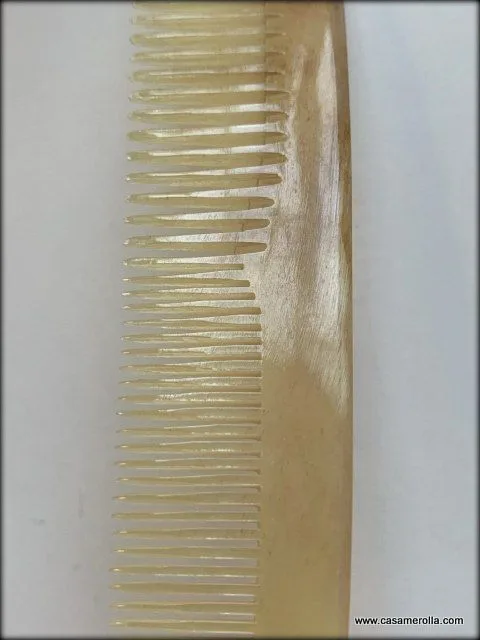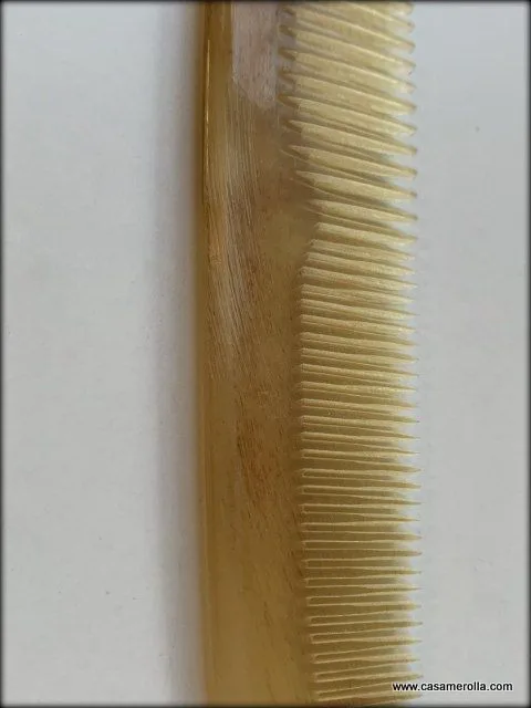 Peine de cuerno natural .Articulo de artesanía de alta calidad. Fabricado con la técnica más depurada. Púas doble, pulidas interiormente. Una caricia para su cabello. Medidas: Grande 17,5 x 3,2 x 0,5 cm. Medidas: 16,2 x 3,0 x 0,5 cm. Modelo CM023.