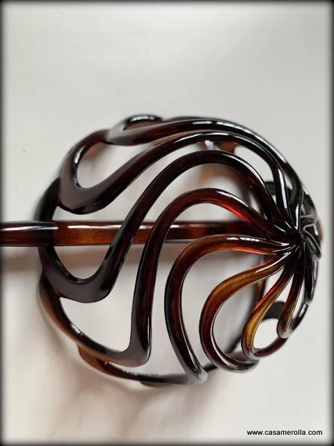 Jaula de moño con palillo elaborada en Carey, articulo de alta calidad, hecho en Francia. Diámetro 8,5 cm. Modelo C 204