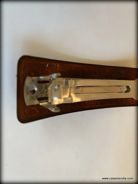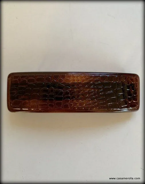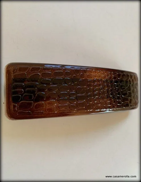 Pasador de cabello elaborado en Carey con efecto de piel de cocodrilo. Articulo pulido a mano, fuerte agarre de pelo,  hecho en Francia. Medidas : 9,0 x 2,5 cm.