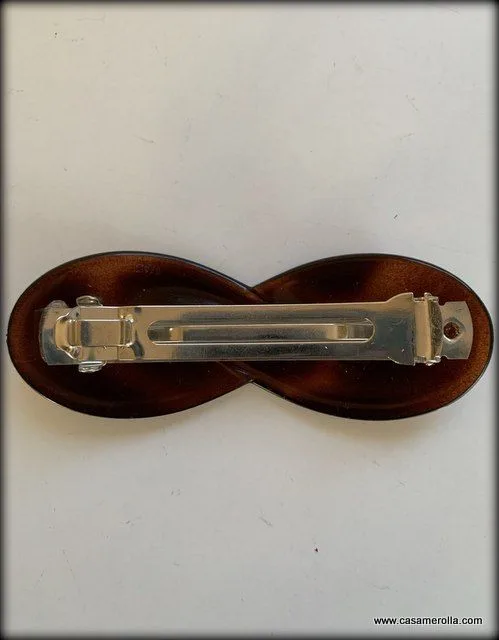 Pasador de pelo en Carey en forma de ocho , producto pulido a mano, hecho en Francia. Medidas : 9,5 x 3,5 cm.