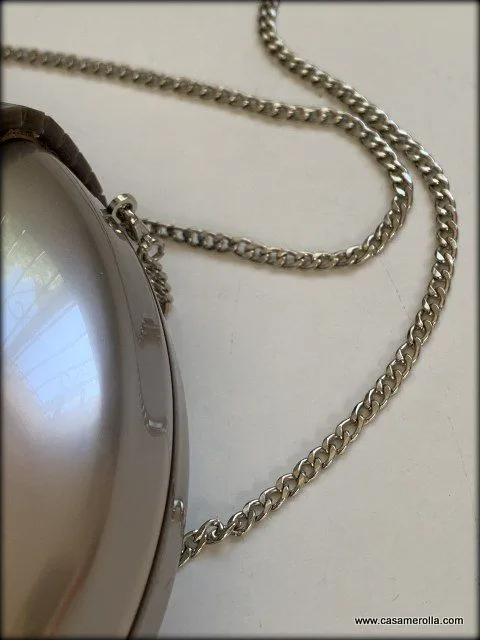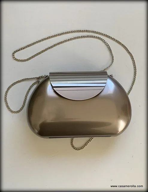 Bolso de mano para fiestas y eventos , color perlado con cierre magnético, bolsillo interior y cadena larga. Articulo fabricado por Villanueva Carey . Medidas : 17,0 x 10,0 x 4,0 cm.