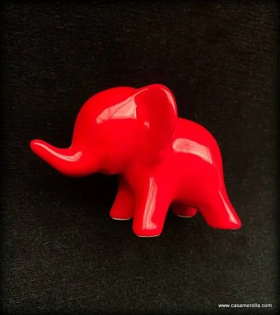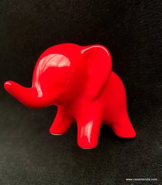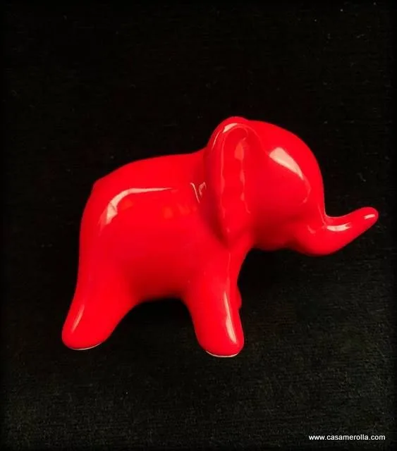 Elefante Rojo de porcelana, articulo artesanal .  Medidas : Largo 10,5 cm,  Ancho  6,5 cm, Alto  7,0 cm,